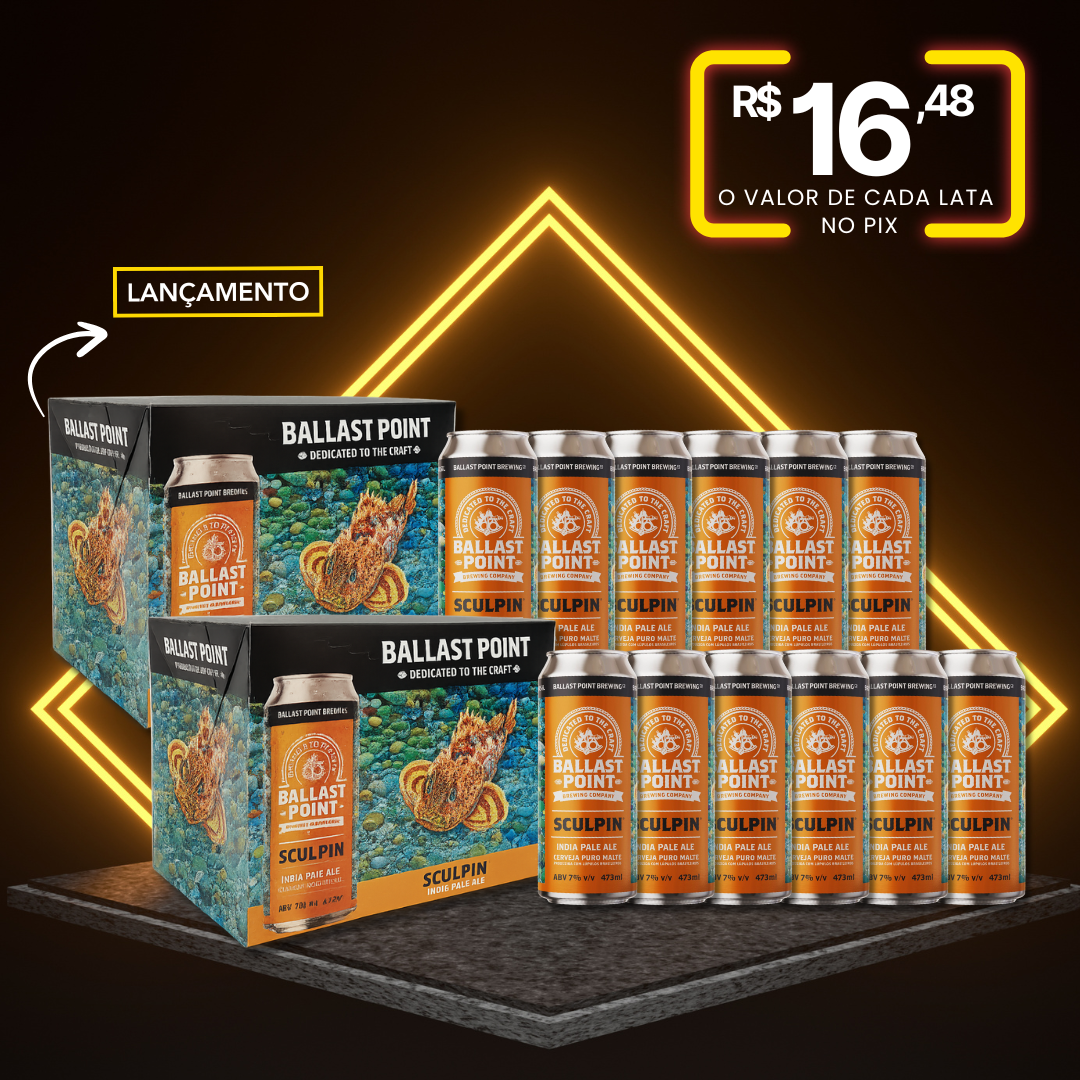 12x CERVEJA BALLAST POINT SCULPIN IPA LATA 473ML UNIDADE - cerveja não pasteurizada ao receber refrigerar