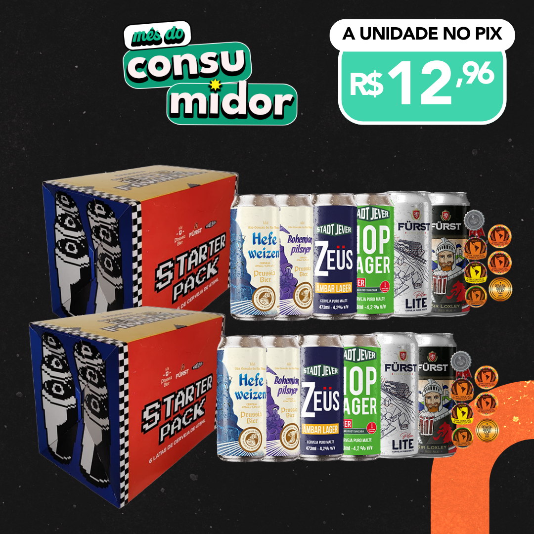 O Starter Pack é o kit ideal para quem está começando no mundo da cerveja artesanal e quer experimentar estilos clássicos sem sustos, mas com personalidade. São 12 latas (473ml) com 2x Hefeweizen, 2x Bohemian, 2x Zeus Amber Lager, 2x Jever Hop Lager, 2x Sir Loxley Red Ale e 2x Pilsen Lite, reunindo leveza, equilíbrio e toques de lúpulo e malte na medida certa. Um combo pensado para iniciantes que querem descobrir novos sabores com qualidade e consistência, explorando os principais estilos de cerveja em um único pack. Perfeito para dar os primeiros passos na cerveja artesanal — ou para presentear quem quer começar do jeito certo.