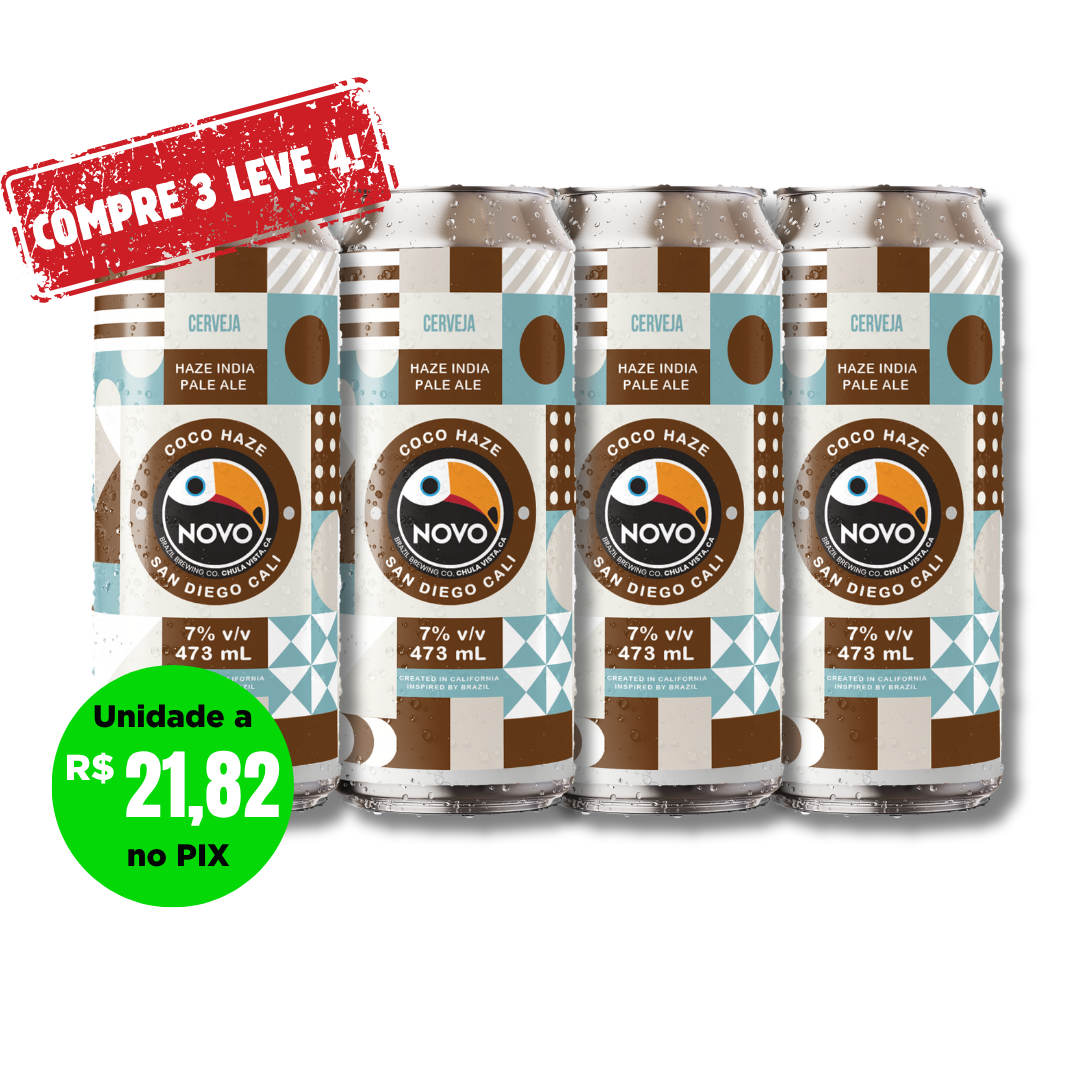 4x CERVEJA NOVO BRAZIL COCO HAZE LATA 473ML - cerveja não pasteurizada ao receber refrigerar
