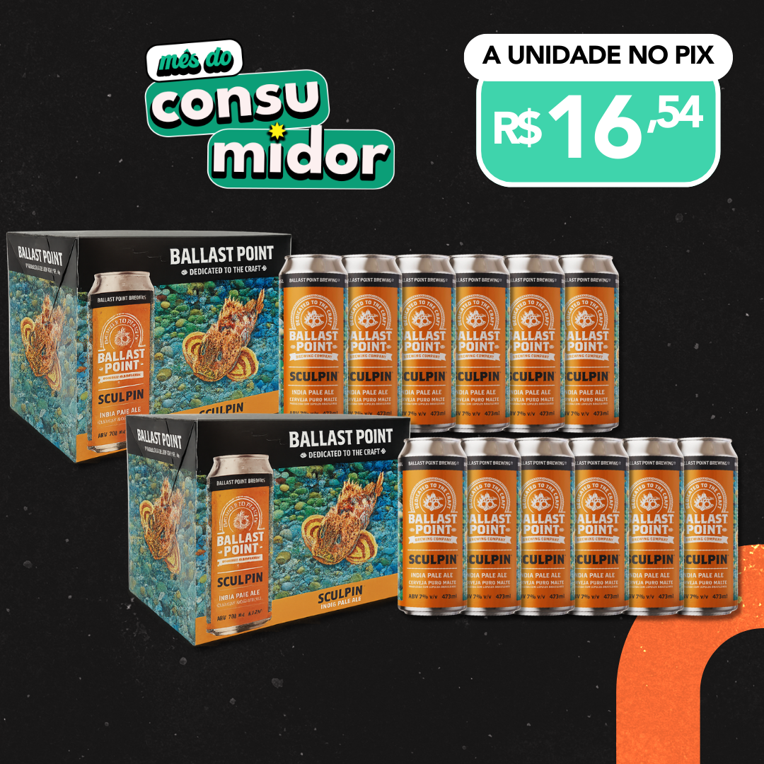 12x CERVEJA BALLAST POINT SCULPIN IPA LATA 473ML UNIDADE - cerveja não pasteurizada ao receber refrigerar